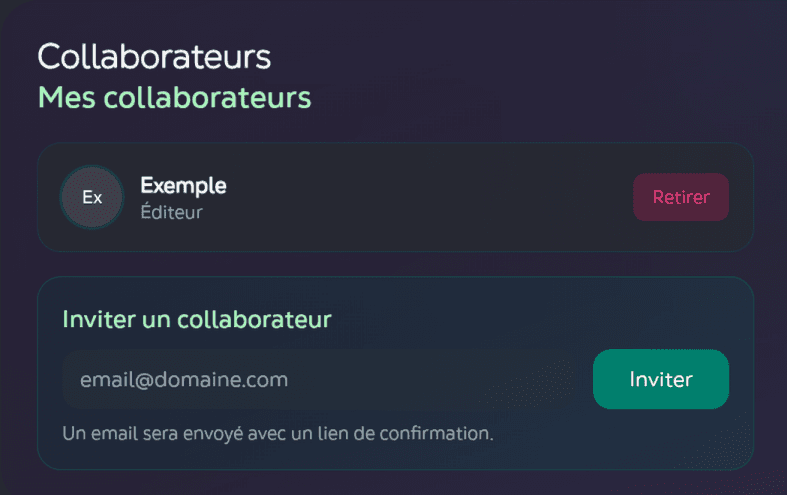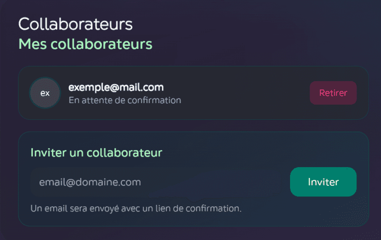 Votre collaborateur.ice recevra une invitation par email, ainsi que dans son onglet "Mon Compte".