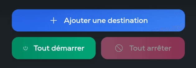 Vous pouvez également démarrer et arrêter toutes vos destination en même temps grâce aux boutons "Tout démarrer" et "Tout arrêter".