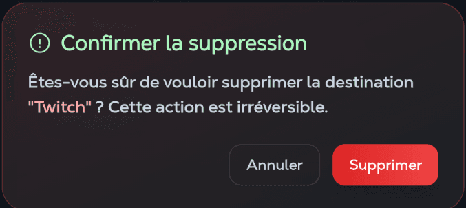 Si aucun flux n'arrive au bout des 30 minutes, la destination se désactivera automatiquement.