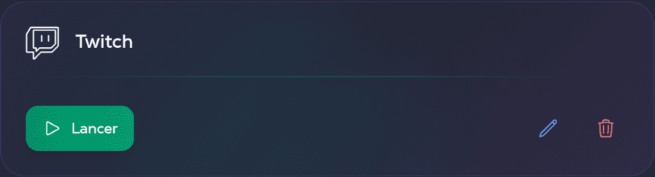 Par exemple, si souhaitez diffuser sur Twitch, en cliquant sur le bouton "Twitch" vous ouvrirez la configuration de la clé de stream Twitch.