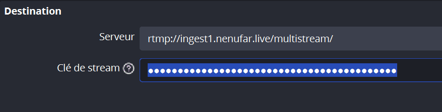 La Clé de Stream également à renseigner dans votre logiciel ou encodeur de streaming