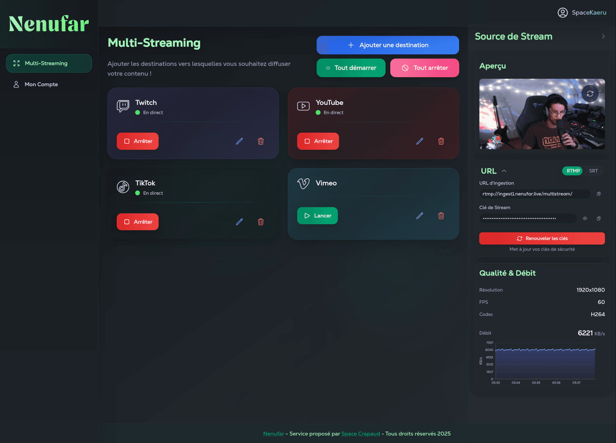 Nenufar est compatible avec tous les logiciels de streaming et encodeurs matériel, vous n'avez rien besoin d'installer en plus.