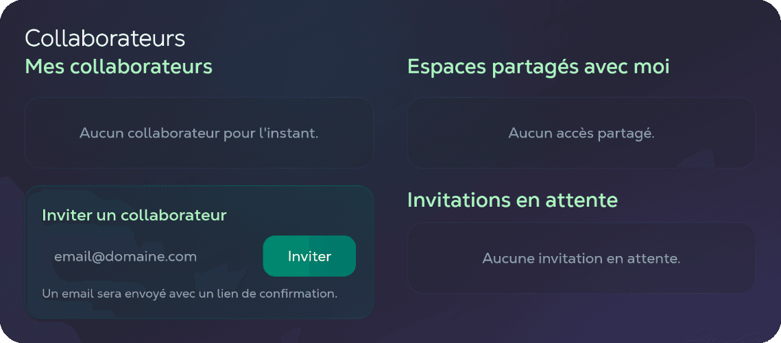 L'abonnement "Plus" vous permet de donner les accès de votre interface à d'autres comptes sans avoir à donner vos identifiants.